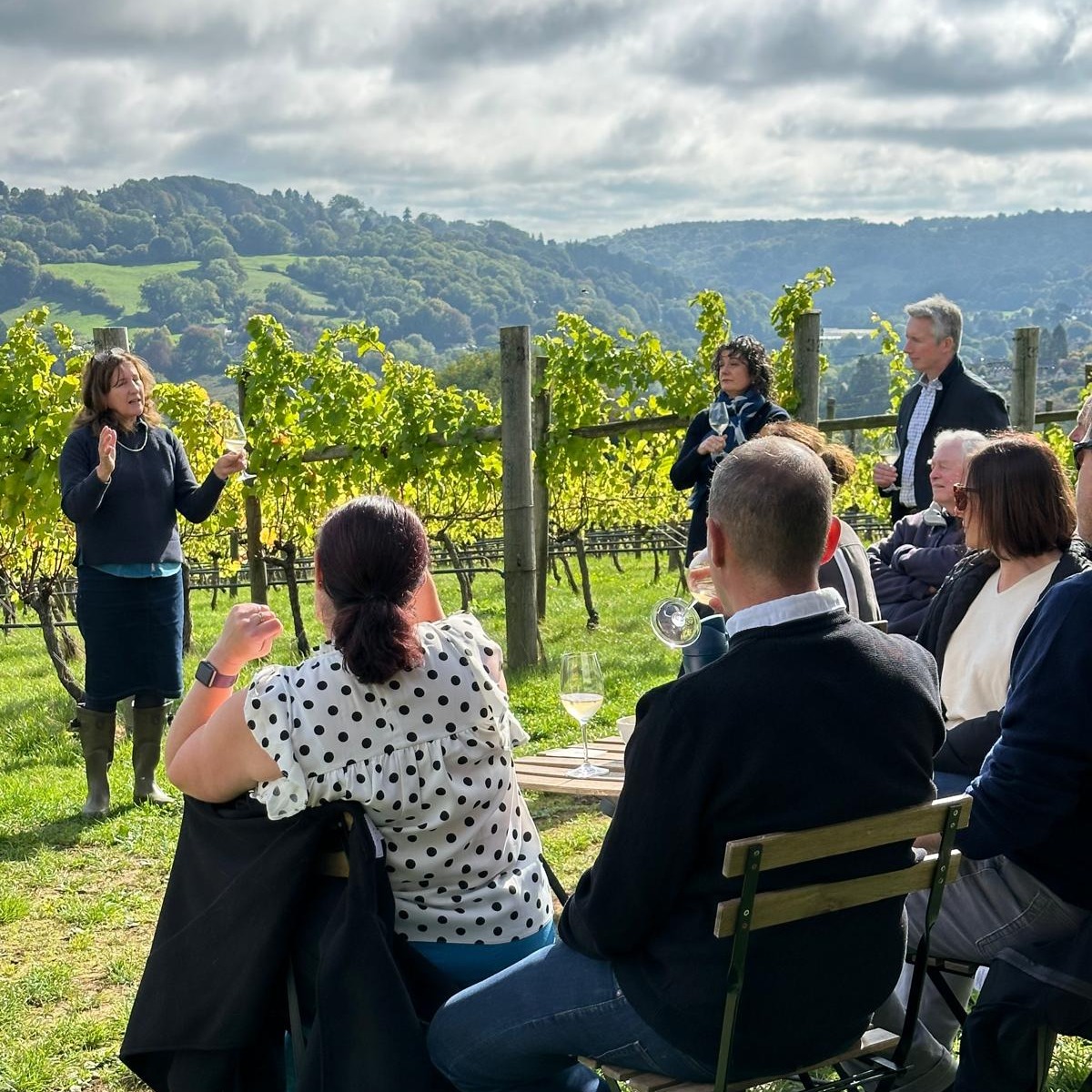 July delivered more sunshine and the vines were well ahead of average in growth development. It was shaping up to be a good year. We proudly sponsored the Summer Soiree at our neighbouring Woodchester Mansion on behalf of the Nelson Trust in association with Murrays Estate Agents, a magical evening of music, history, bats and architecture. Jeremy, our winemaker, gained international recognition on tour in Italy talking to Italian winemakers about English sparkling wine production at the Oenolife Wine Conference. Our new Pinot Rosé 2024 was released just in time for the Party on the Hill, Chalfest, one of the team’s favourite events of the summer season.